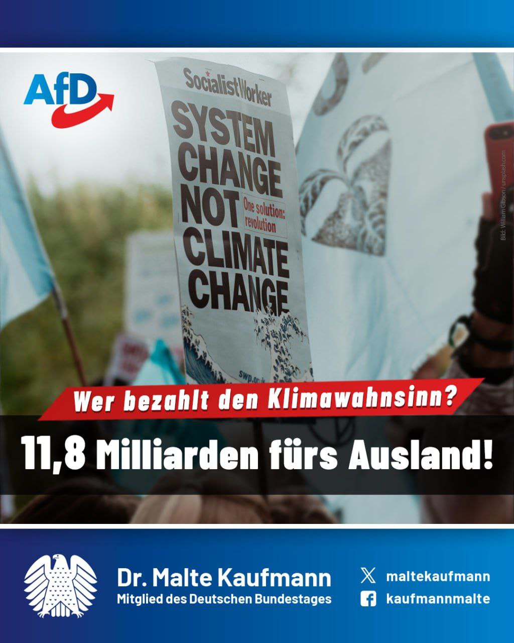 Die Bundesregierung gibt 11,8 Milliarden Euro für internationale Klimahilfen aus, während Deutschland selbst vor enormen Herausforderungen steht: Rentner leiden unter Altersarmut, unsere Infrastruktur ist vielfach marode, und Sozialsysteme geraten durch Überlastung an jedem Punkt an ihre Grenzen. Zugleich kämpft der deutsche Mittelstand mit den weltweit höchsten Steuer- und Abgabenlasten. Ein messbarer Nutzen dieser Auslandszahlungen für das Weltklima oder den Wirtschaftsstandort Deutschland ist nirgends nachgewiesen. Wir werden sämtliche Klimazahlungen ins Ausland einstellen und diese Mittel in Lebensqualität, Rente und Zukunftsfähigkeit hierzulande zu investieren. Steuergeld muss für unser Land und unsere Bürger eingesetzt werden – nicht für fragwürdige Programme im Ausland!