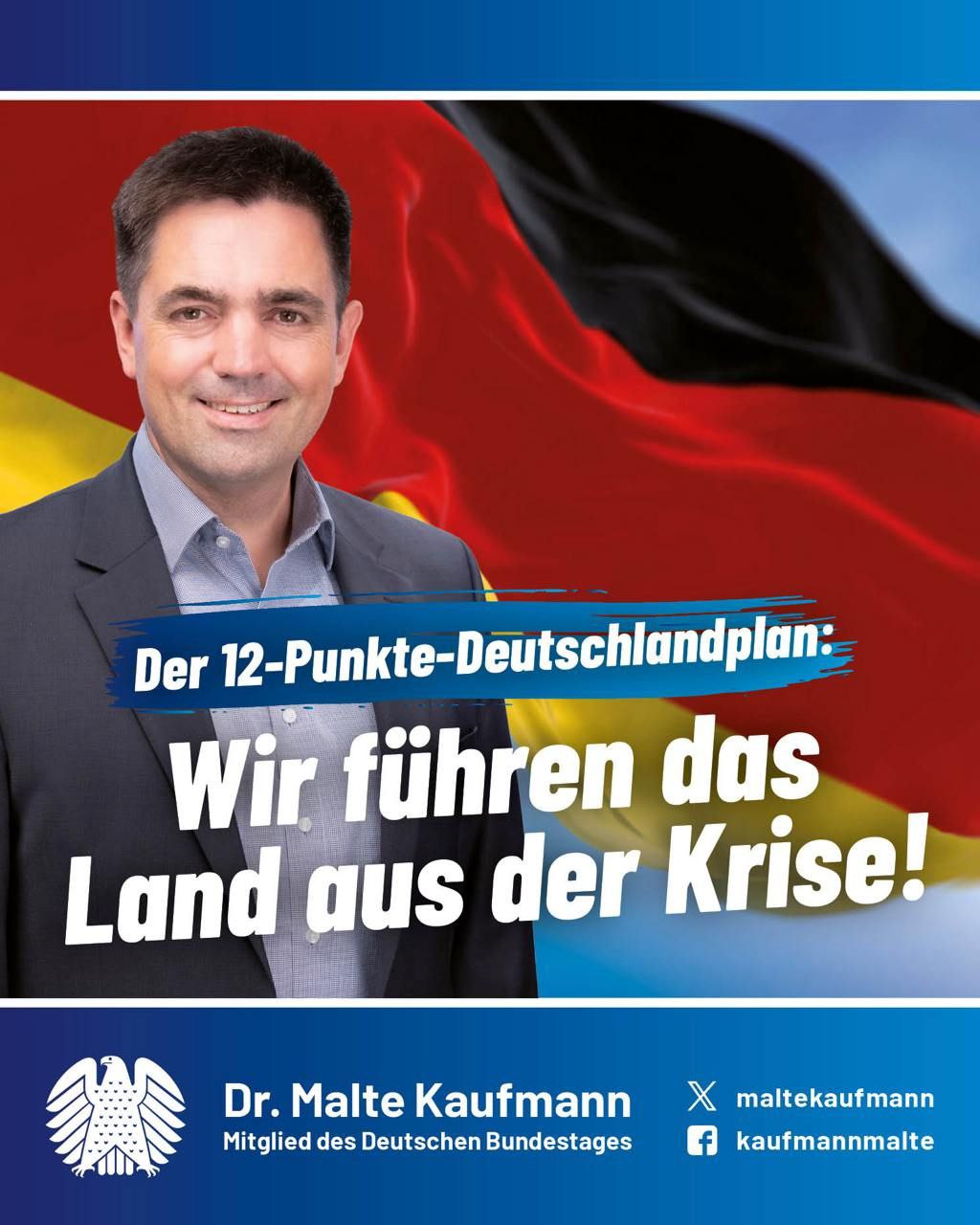In der Generaldebatte zum Bundeshaushalt stellte Dr. Alice Weidel unseren 12-Punkte-Deutschlandplan vor: Abschaffung des Heizungsgesetzes, Rückkehr zur Kernkraft, günstige Gasimporte, Beibehaltung des Verbrenners … Lauter vernünftige Maßnahmen, die unsere Wirtschaft wieder ankurbeln – die schon viel zu lange andauernde Depression muss enden! Statt einer Energiewende brauchen wir eine Asylwende, Sachleistungen statt Bargeld. Eine niedrige Pauschalsteuer und Bürokratieabbau würden sofort zu mehr Netto vom Brutto führen! Besonders wichtig: Sozialleistungen nur für Einzahler und das Verbot der Antifa! Wir fordern Kanzler Merz auf, endlich die versprochene bürgerliche Wende einzuleiten und mit uns zusammenzuarbeiten. Der Plan ist umsetzbar – trotz EU-Hürden – aber natürlich nicht mit der Brandmauer. Deutschland zuerst!