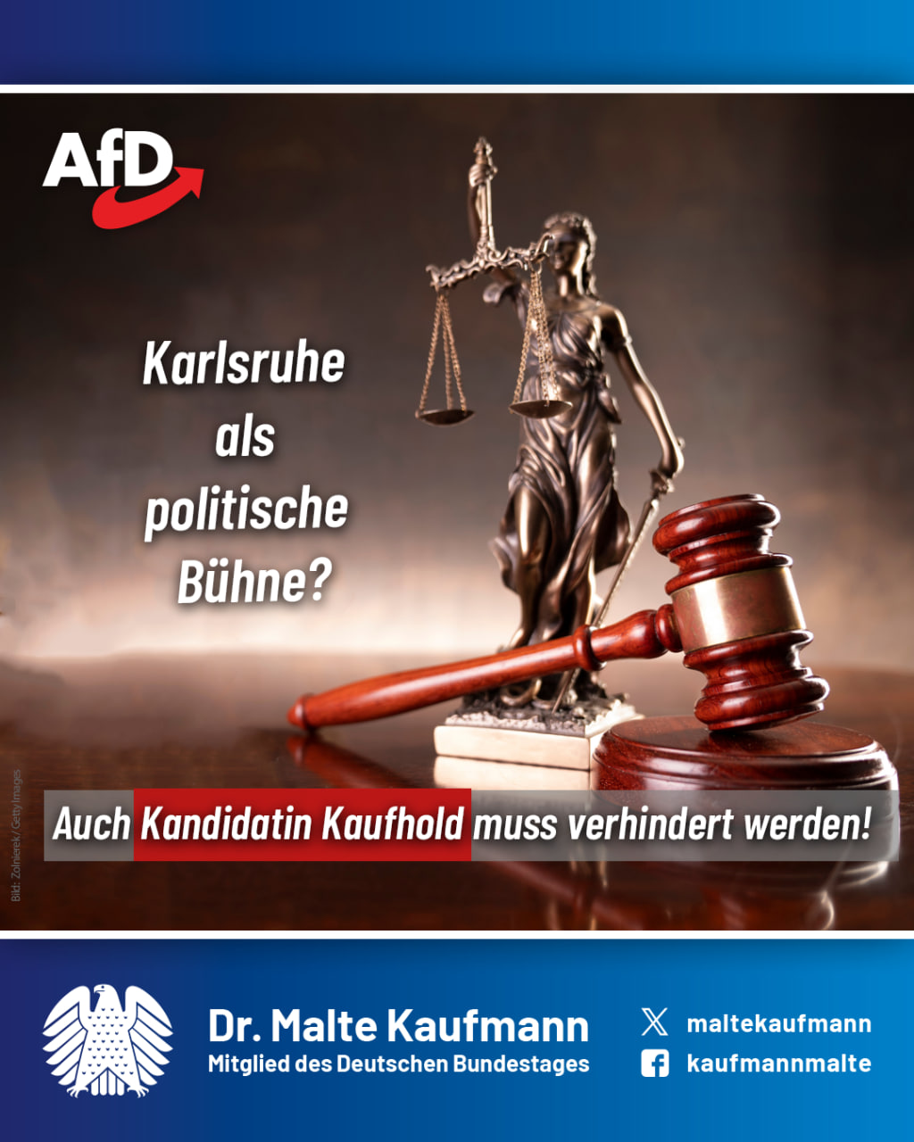 Die Nominierung von Prof. Dr. Ann-Katrin Kaufhold für den Zweiten Senat des Bundesverfassungsgerichts durch die SPD ist ein Alarmsignal. Der Zweite Senat entscheidet über hochpolitische Fragen – darunter auch Parteiverbote. Kaufhold hat sich in einer Diskussionsrunde im Salon Luitpold positioniert, wo sie von der „Ängstlichkeit“ von Verbotsbefürwortern sprach und forderte, das Risiko eines Scheiterns vor Karlsruhe müsse „ausgehalten“ werden. Solche Aussagen disqualifizieren sie für ein Richteramt, das Neutralität verlangt. Wer öffentlich eine Agenda vorwegnimmt, darf nicht über Verfassungsfragen mitentscheiden.
