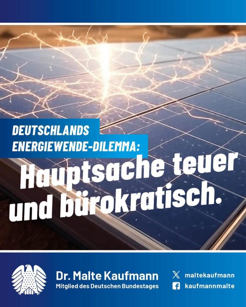 Schlimm genug, dass wir mit unseren ca. 5 Millionen PV-Anlagen und über 30.000 Windrädern nicht den eigenen Bedarf an Strom decken können, denn wenn der Wind nicht weht und die Sonne nicht scheint, reichen unsere sonstigen Kraftwerke nicht aus. Dann muss teuer aus dem Ausland importiert werden. Wenn die Sonne aber scheint und wir wie etwa über Ostern nicht so viel Strom benötigen, wird die durch Subventionen hergestellte Energie ans Ausland zu negativen Preisen verkauft – im Klartext: Wir zahlen auch noch für die Abnahme! Was macht die deutsche Regierung? Das was sie am besten kann: Ein weiteres, kompliziertes Gesetz, das die Bürokratie vergrößert und eine Smart-Meter-Pflicht mit sich bringt, die Sache also im Zweifel verteuert. Seit Ende Februar ist das Solarspitzengesetz in Kraft – die neue Regierung will es “prüfen”, was nicht viel bedeuten dürfte. Die #Energiewende wird mit jedem neuen Gesetz teurer und komplizierter, ohne dass die Probleme wirklich gelöst werden – auch nicht unter Schwarz-Rot.