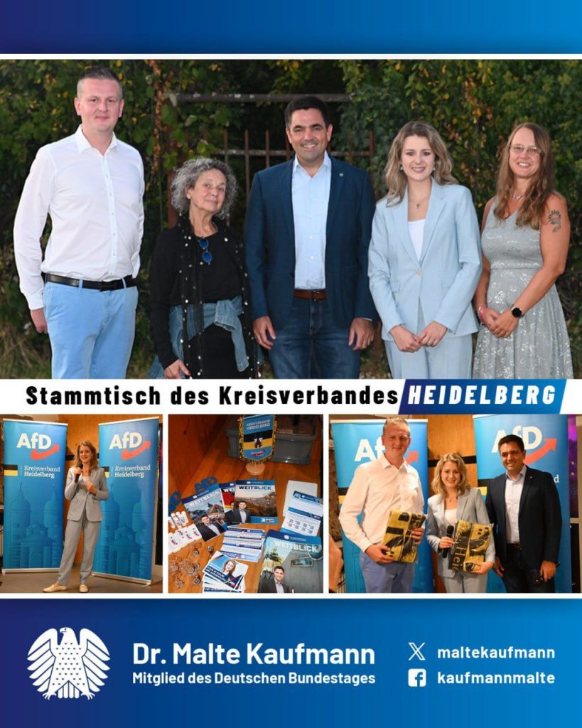 Freitag Abend durfte unser AfD-Kreisverband Heidelberg einen inspirierenden Stammtisch erleben. Unsere Referentin, meine geschätzte Kollegin Diana Zimmer MdB, zugleich engagiertes Mitglied des Landesvorstands aus Pforzheim, gewährte uns interessante Einblicke in die parlamentarische Arbeit. Besonders eindrücklich schilderte sie, wie aktuelle Beschlüsse in Berlin – etwa zur Migrations- und Sicherheitspolitik – ganz konkret auf das Leben bei uns vor Ort wirken. Es ist wichtig, dass Politik nicht an den Menschen vorbeigeht, sondern bei ihnen ankommt – ein Anspruch, dem wir als AfD konsequent verpflichtet sind. Zahlreiche Fragen aus dem engagierten Publikum zeigen, dass unsere bürgernahe Politik auf breite Resonanz trifft. Herzlichen Dank an alle Gäste für den offenen Austausch und an Diana Zimmer für ihren authentischen Bericht, der Mut macht, sich weiterhin mit Herz und Verstand für unser Land einzusetzen!