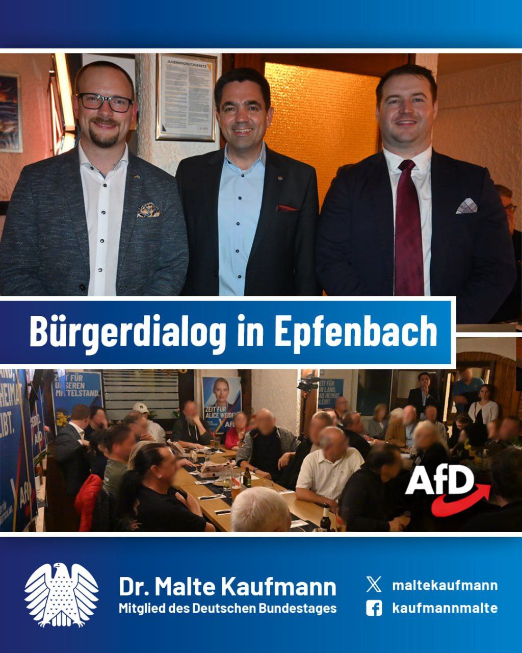 Gestern Abend erlebte Epfenbach einen Bürgerdialog, der das Gasthaus bis auf den letzten Platz füllte. Als Gastredner durfte ich Einblicke in drängende Themen aus dem Bundestag geben. Ich habe unter anderem über die aktuelle Situation der Wirtschaft referiert, und welche Lösungen unsere AfD regelmäßig in den Bundestag einbringt.