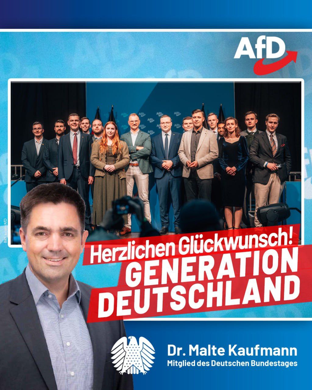 Herzlichen Glückwunsch an die AfD zur erfolgreichen Gründung der neuen Jugendorganisation „Generation Deutschland“ in Gießen! Trotz massiver Störungen durch linksextremistische Proteste und Blockaden habt ihr mit über 800 Delegierten ein starkes Statut verabschiedet und einen engagierten Vorstand gewählt. Besonders gratuliere ich Jean-Pascal Hohm zu seiner Wahl als Bundesvorsitzender mit beeindruckenden 90,4 % der Stimmen! Als 28-jähriger Brandenburger Landtagsabgeordneter bringst du frischen Schwung und Zuversicht – für eine echte politische Wende und ein starkes Deutschland. „Deutschland ist noch nicht verloren!“ – deine Worte inspirieren. Die enge Bindung an die Partei als Kaderschmiede verspricht Erfolge. Ignoriert die Gewalt, die Diffamierungen und die falsche Berichterstattung: Unser Optimismus wird siegen!