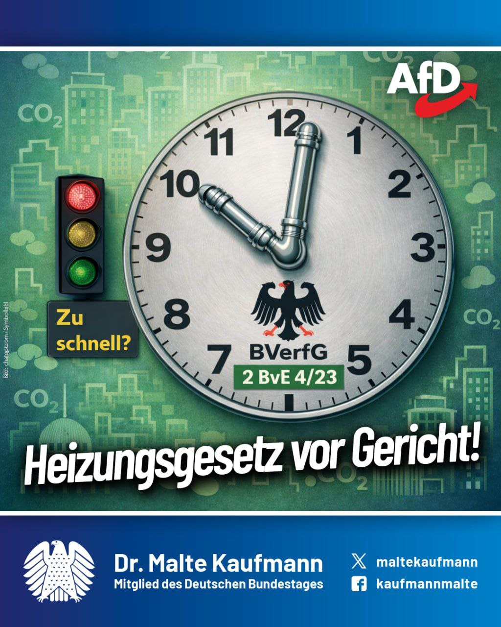 Das „Heizungsgesetz“ vor dem Bundesverfassungsgericht! Im Streit: War das Gesetzgebungsverfahren zur 2. Novelle des #Gebäudeenergiegesetzes (GEG) verfassungswidrig beschleunigt? Der Antragsteller (ehem. CDU/CSU-Abgeordneter Thomas Heilmann) wirft dem Bundestag vor, sein Recht auf gleichberechtigte Teilhabe (Art. 38, 42, 76 GG) verletzt zu haben – zu kurze Beratungsfristen, keine Chance für eigene Änderungen. Ich klage ebenfalls und bin gerade in Karlsruhe! Wir lehnen das GEG grundsätzlich ab und fordern seine komplette Abschaffung! #AfD
