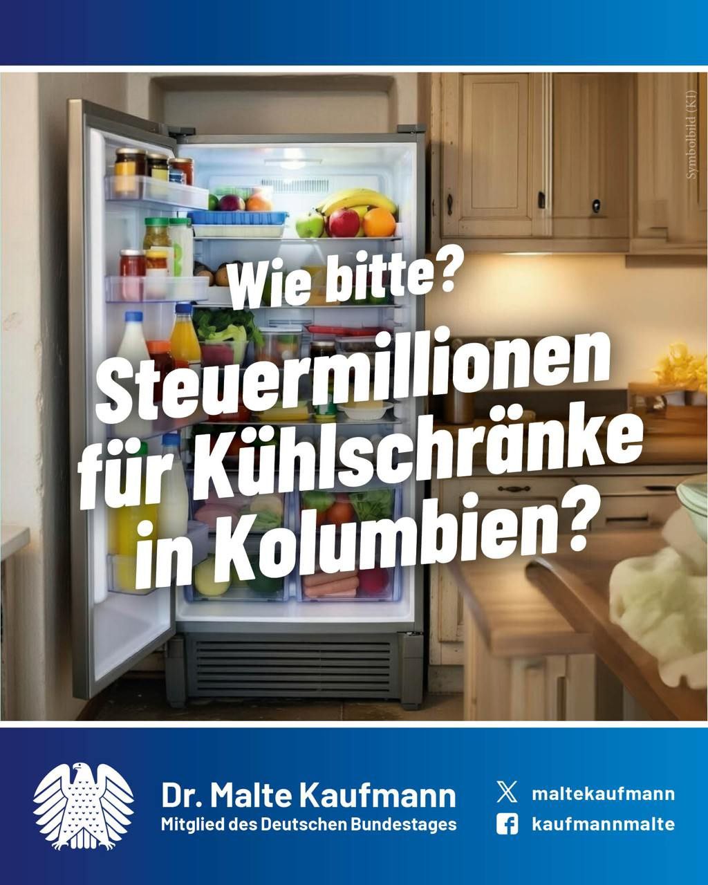 „Es ist im Interesse Deutschlands, die Minderung von global wirksamen Treibhausgasemissionen zu möglichst geringen Kosten zu erreichen“, schreibt die Bundesregierung in ihrer Antwort auf eine Anfrage von mehreren Kollegen meiner #AfD-Fraktion. 4,33 Millionen Euro sind demnach „geringe Kosten“, und die Beteiligung an der Förderung von effizienten Kühlschränken in Kolumbien wirkt sicher super gegen den Klimawandel.