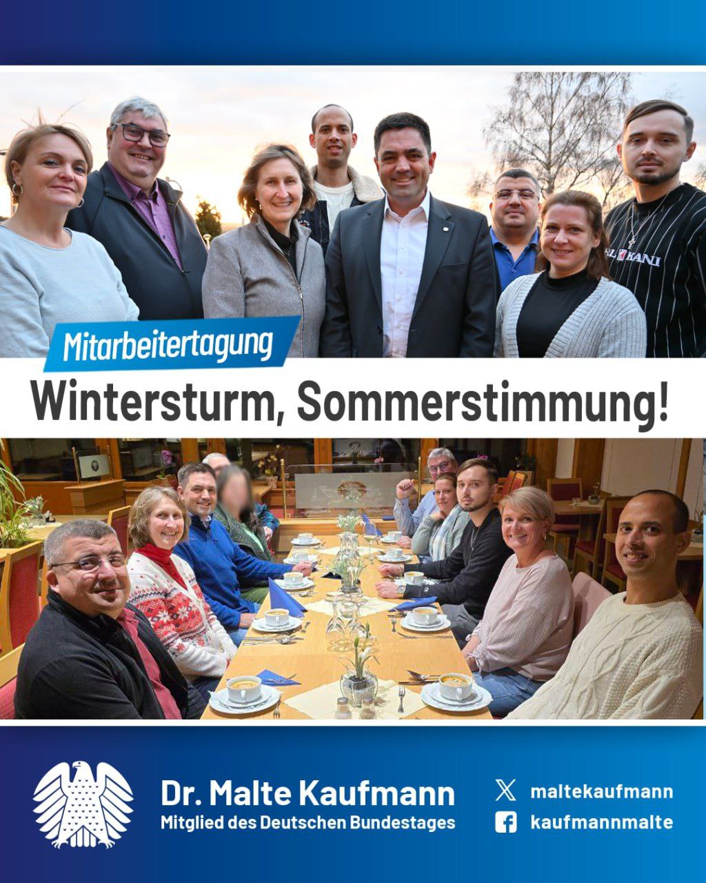 Kurz vor der ersten Plenarwoche kam der Mitarbeiterstab meines Büros zu einer Klausur zusammen. Bei winterlichem Wetter stimmten wir uns auf die vor uns liegenden Aufgaben ein. Wir freuen uns auf das neue Jahr – es wird ein wichtiges werden. Mit neuem Mut und Geschlossenheit werden wir unsere Arbeit im Bundestag und in der #AfD-Fraktion weiter verbessern. Für Deutschland, und für unsere Heimat!