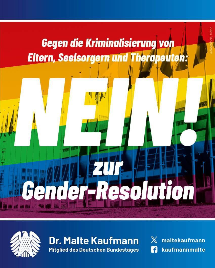 Die Resolution „Verbot von Konversionspraktiken“, die gestern in der Parlamentarischen Versammlung des Europarates zur Abstimmung vorlag, ist ein massiver Eingriff in die Gewissensfreiheit. Offensichtlich soll es darauf hinauslaufen, per Gesetz zu verbieten, die sogenannte #Transgender-Ideologie in Frage zu stellen. Die Resolution vermischt absichtlich die frühere teilweise gewaltvolle „Umerziehung“ homosexueller Männer mit unklaren Begriffen wie Geschlechtsidentität und Transidentität bei Kindern. Eltern, die ihre Kinder in der Pubertät begleiten, werden pauschal krimninalisiert, auch wenn sie nur verhindern wollen, dass ihr Kind unfruchtbar wird durch die Einnahme von Pubertätsblockern. Durch die Resolution sollen außerdem religiöse Praktiken – wie Gebete – auf eine Ebene mit Missbrauch und Foltermethoden gestellt und verboten werden.