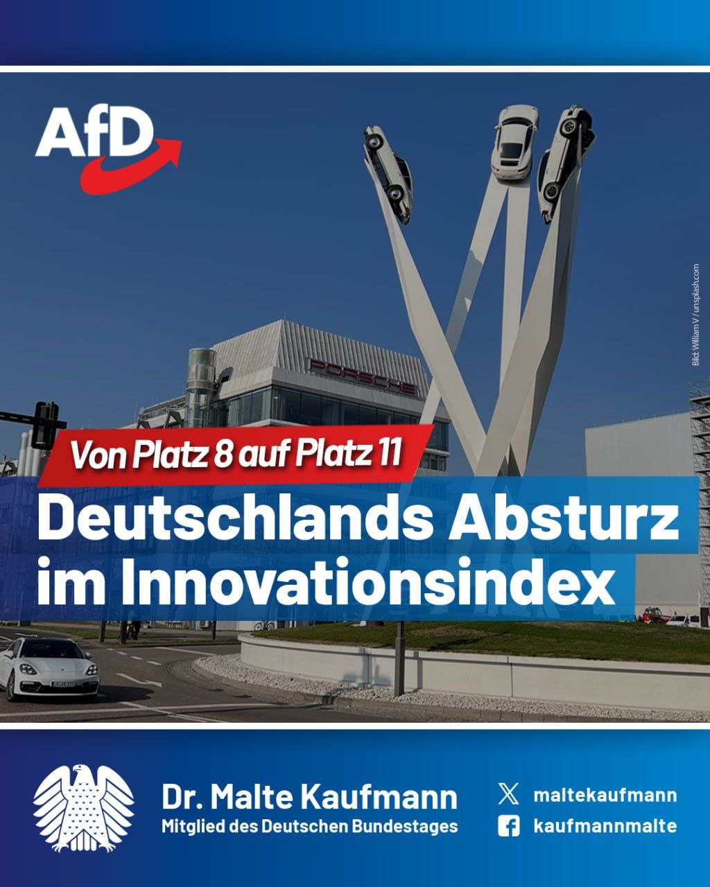 Der dramatische Absturz Deutschlands im UN-Innovationsindex ist ein Armutszeugnis für die Bundesregierung und Ausdruck verfehlter Wirtschaftspolitik. Während China gezielt auf Hightech, Forschung und Bildung setzt, wird in Deutschland durch überbordende Bürokratie, ideologische Energie- und Bildungspolitik sowie Steuerlast Innovation systematisch behindert. Statt technologische Spitzenstellung zu verteidigen, verpasst unser Land den digitalen Wandel und verliert sichtbar den Anschluss an moderne Industrienationen. Ausgaben für Forschung und Entwicklung sind unterdurchschnittlich, Investoren bleiben aus, echte Hightech-Freiheit ist Mangelware. Wer jetzt nicht handelt, riskiert endgültig den Abstieg zum Innovations-Entwicklungsland! Die AfD fordert: Rahmenbedingungen, in denen Erfindergeist belohnt und nicht durch staatliche Kontrolle erdrosselt wird – für Deutschlands Zukunft und Wohlstand!