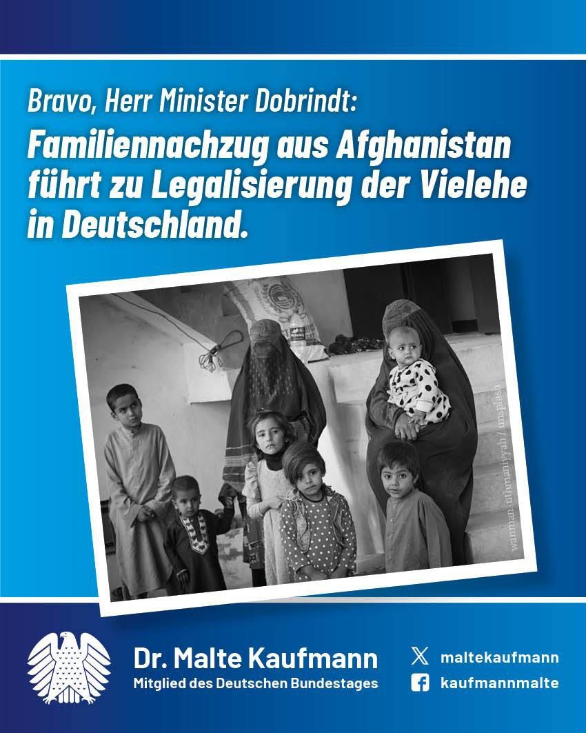 Was die Ampel eingeführt hat – der Nachzug von Zweitfrauen aus Afghanistan – wird unter Innenminister Dobrindt (CSU) einfach stillschweigend weitergeführt. „Unter dem Deckmantel von Härtefällen wurden Zweitfrauen aus Afghanistan eingeflogen und der Familiennachzug faktisch zur Legalisierung der islamischen Vielehe missbraucht.“, berichtet diese Woche die Jüdische Rundschau und nennt es einen „politisch gewollten Kontrollverlust“.